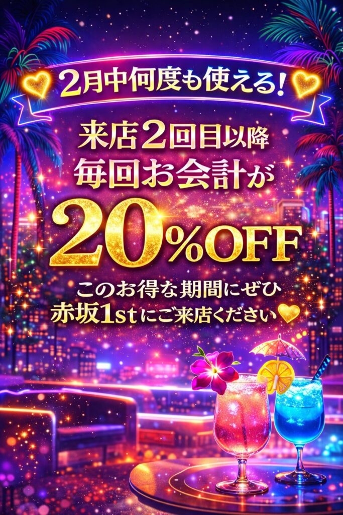 期間中、2回目以降のご来店は毎回お会計から20%OFF。